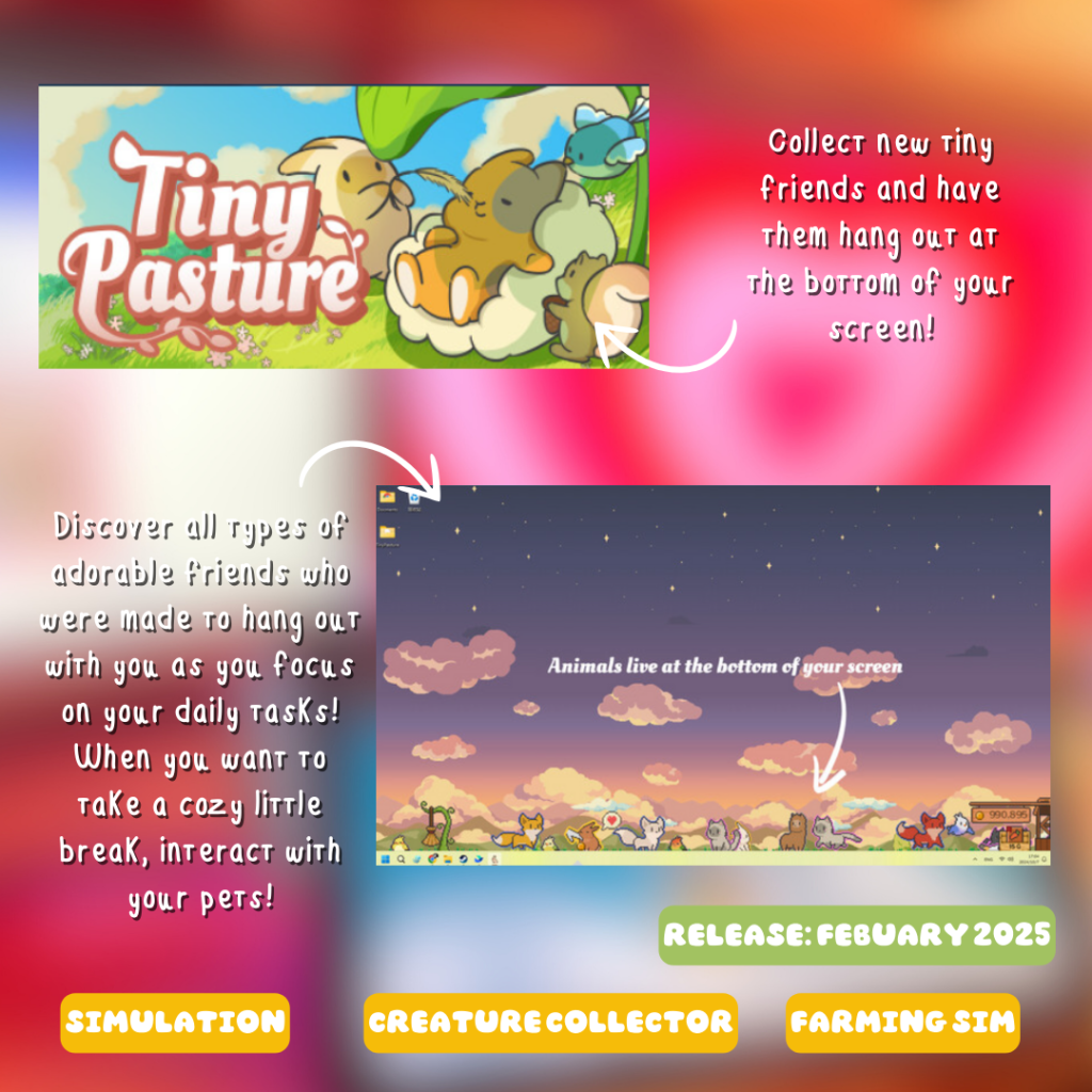 Discover all types of adorable friends who were made to hang out with you as you focus on your daily tasks! When you want to take a cozy little break, interact with your pets!