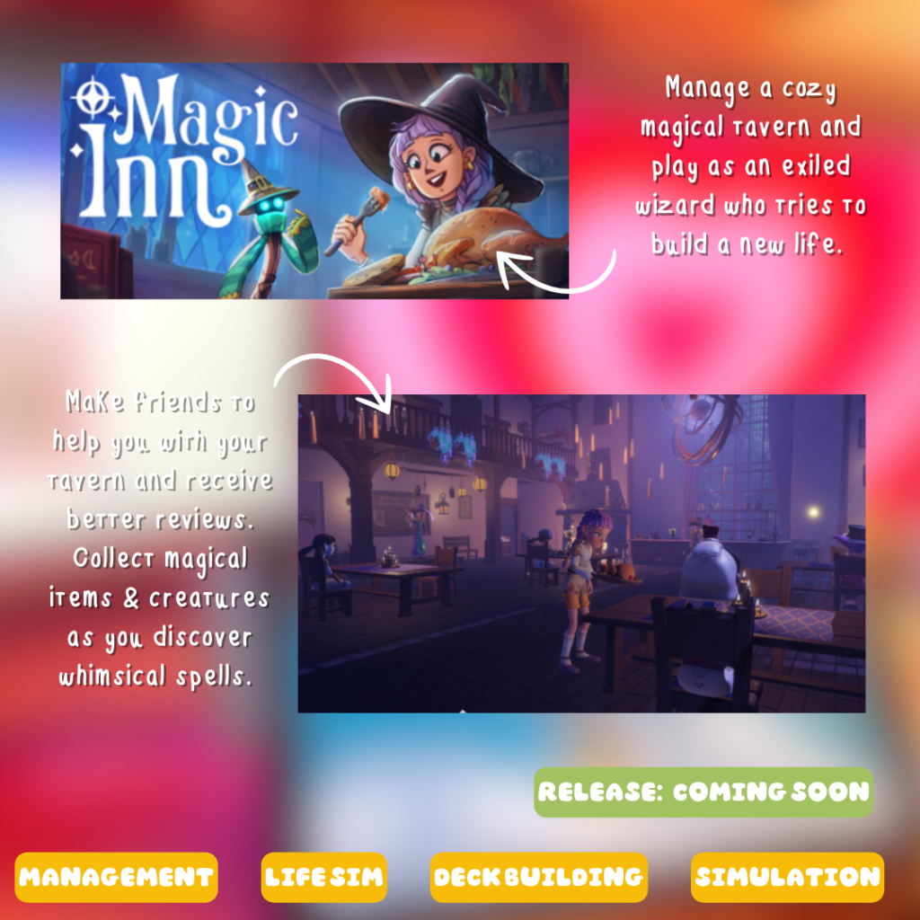Manage a cozy magical tavern and play as an exiled wizard who tries to build a new life.