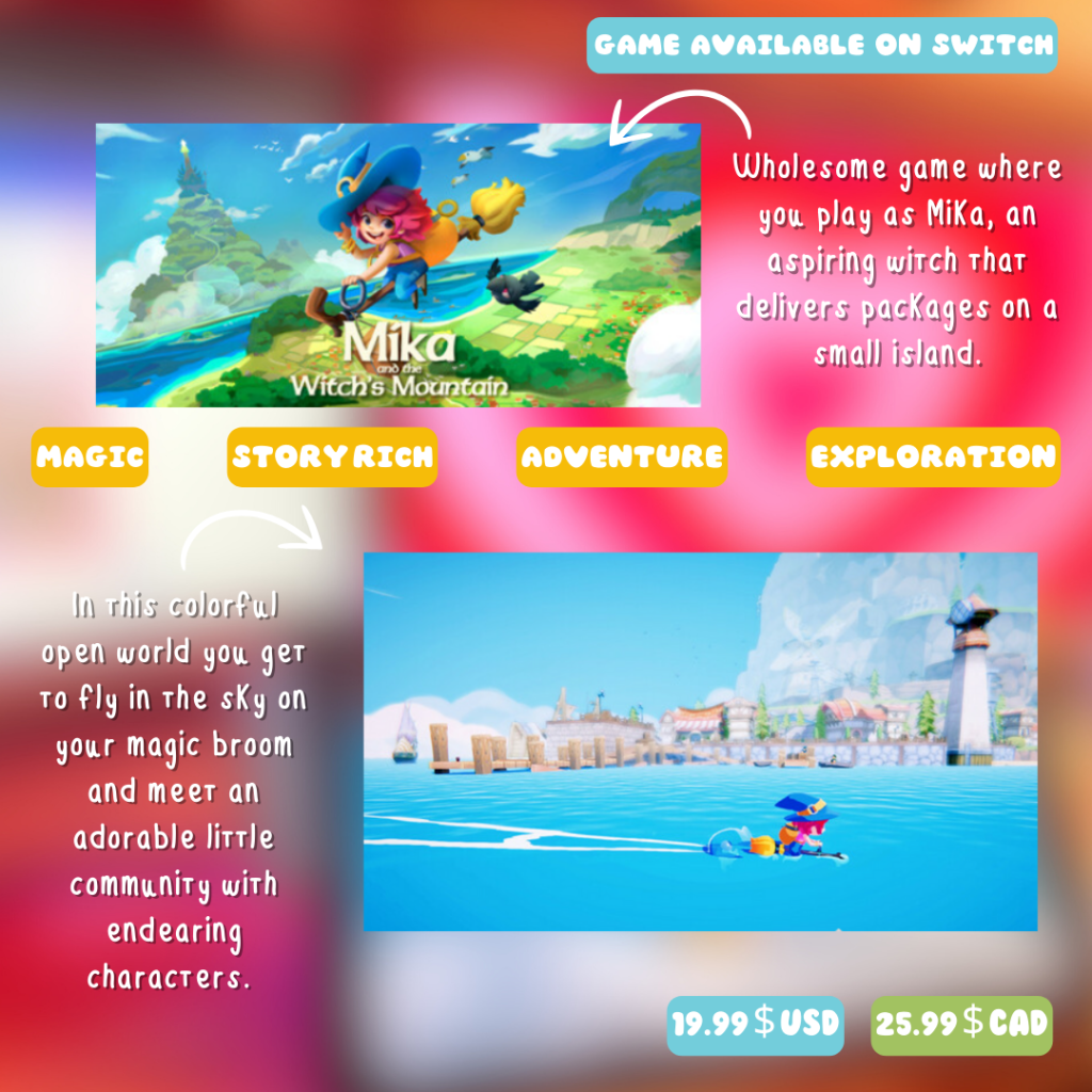 Wholesome game where you play as Mika, an aspiring witch that delivers packages on a small island.