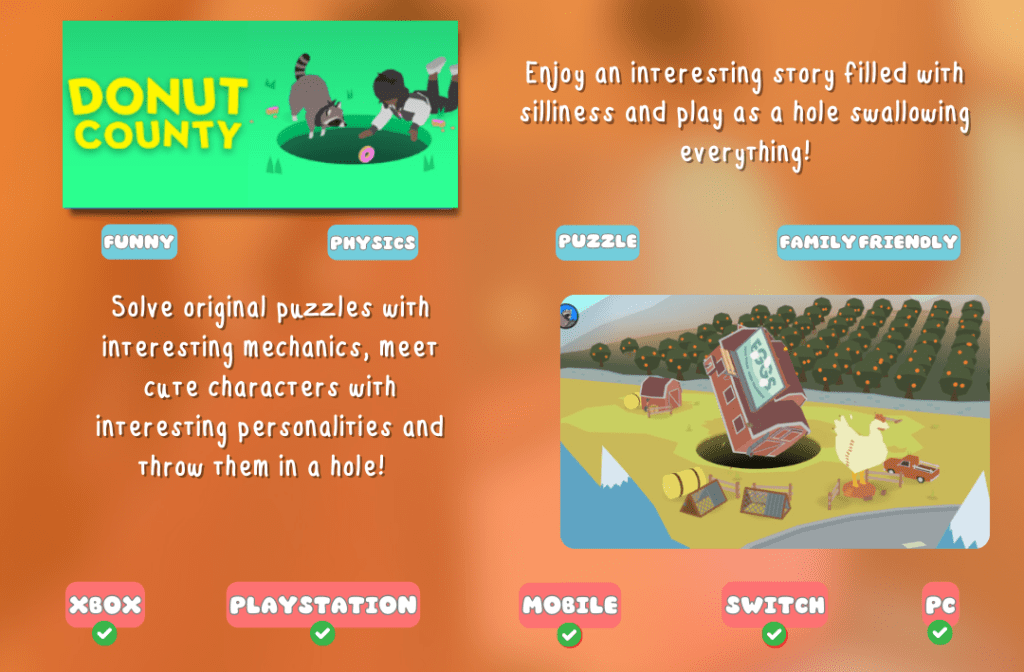 Solve original puzzles with interesting mechanics, meet cute characters with interesting personalities and throw them in a hole!