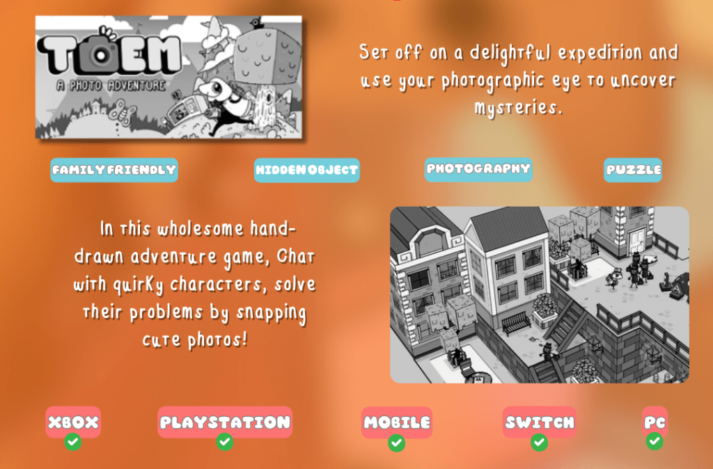 Keywords: Casual, story rich, wholesome, family friendly, adventure, RPG, emotional, great soundtrack, puzzle