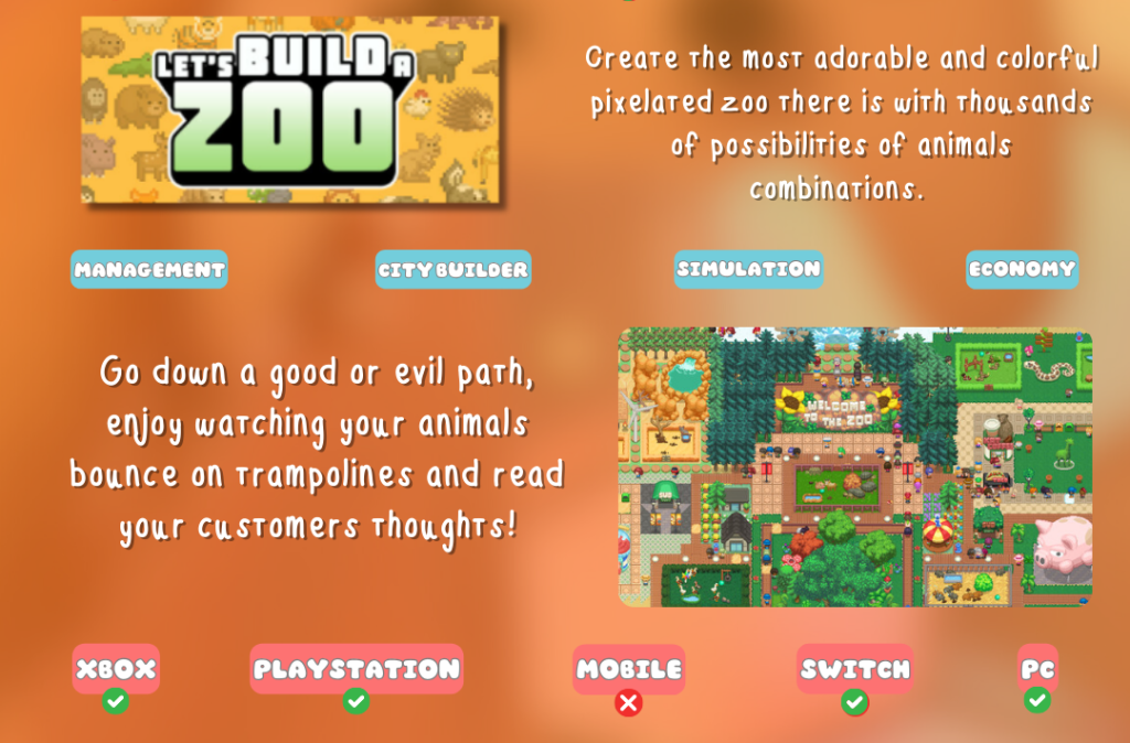 Keywords: Management, simulation, city builder, sandbox, building, creature collector, cute, economy, dinosaurs