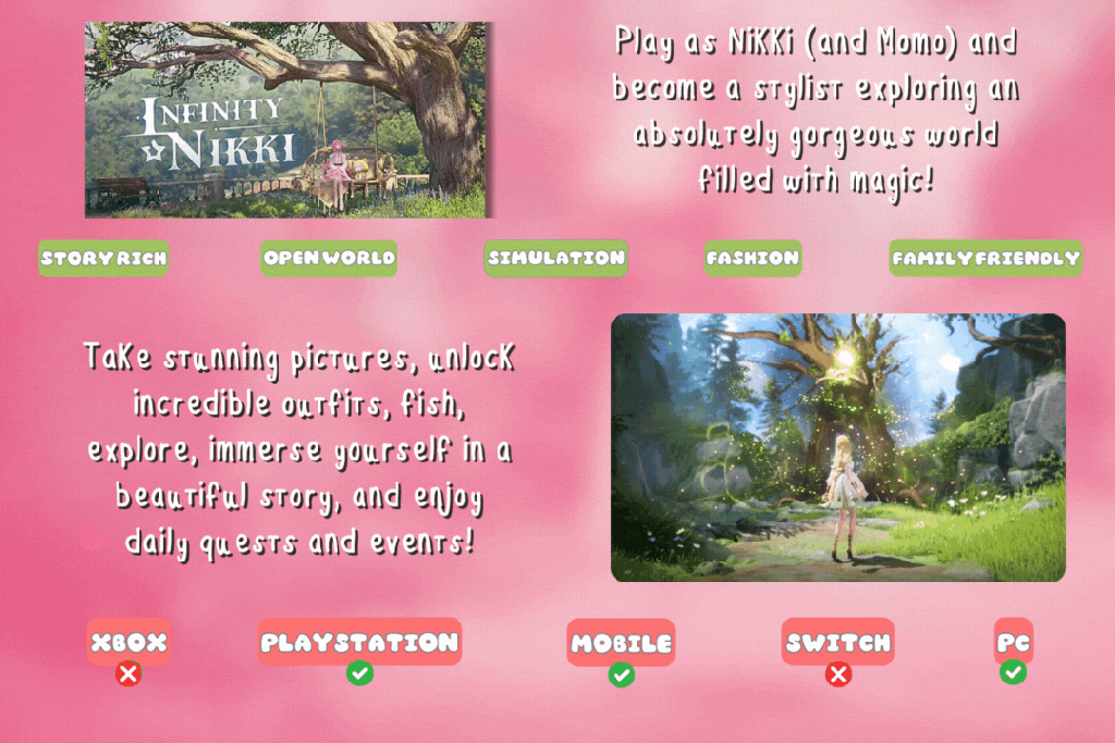 Play as Nikki (and Momo) and become a stylist exploring an absolutely gorgeous world filled with magic!