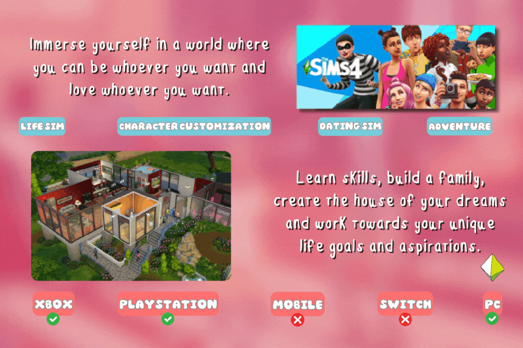 Keywords: Life sim, character customization, building, moddable, adventure, simulation, dating sim, casual, sandbox, romance