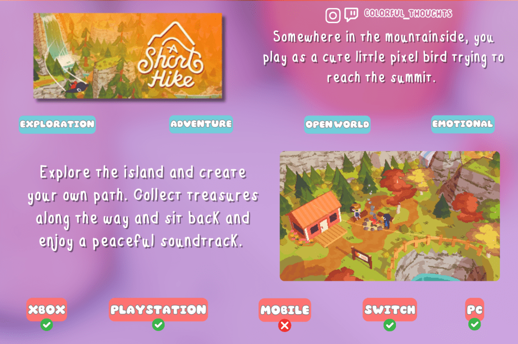 I’ve seen so much about the Nintendo Switch 2 lately and I’ve come to realize that I need to give my Oled a little more attention! So if like me you want to use more of your switch, here are some cozy games you should definitely try!