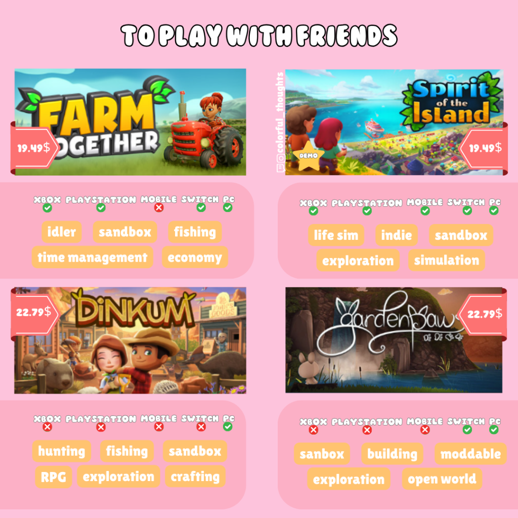 Play across platforms with your friends and build your farm, help the local museum and turn a little island into a very attractive tourist destination!