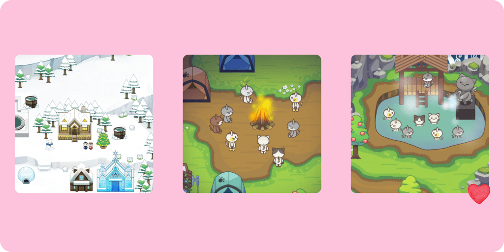 Escape from reality to farm, build and collect adorable little cats. Make your camp bigger, welcome new friends and enjoy fishing or making dishes!
