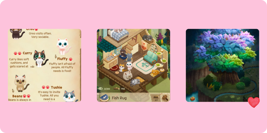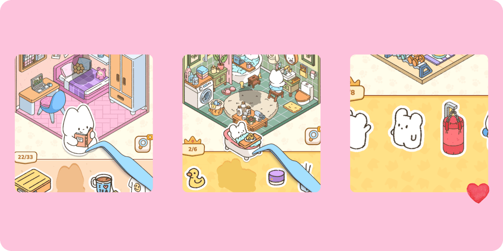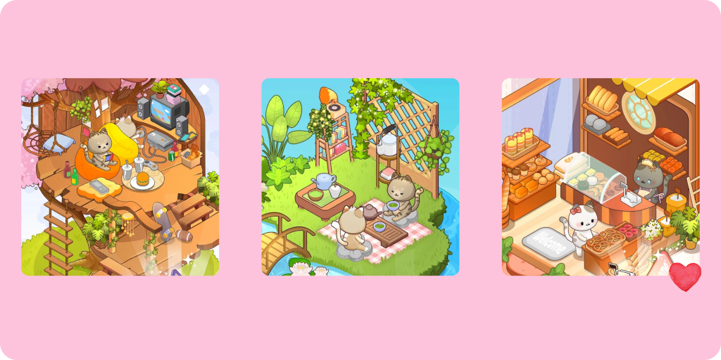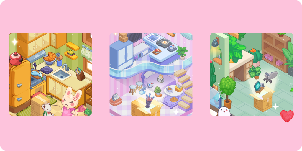 Unpack adorable boxes with cute furniture and cute cats. Discover new rooms and make the cutest rooms!