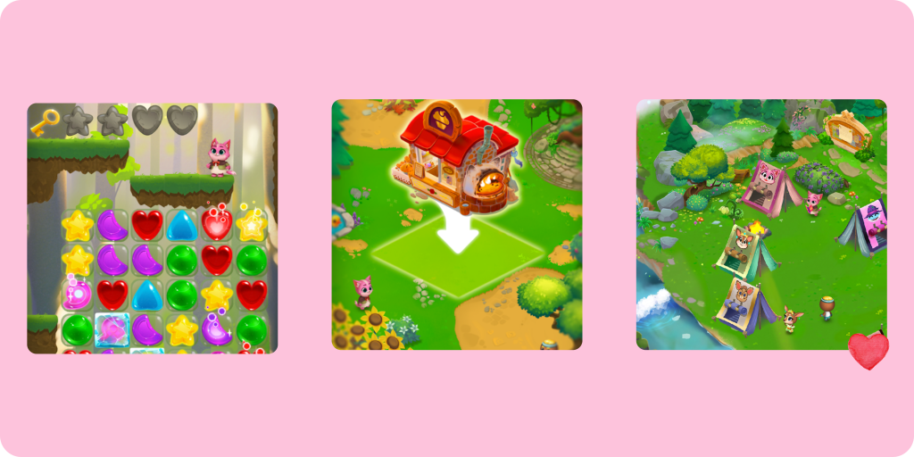 Puzzle, match 3, adventure, city builder, cute, casual, animals