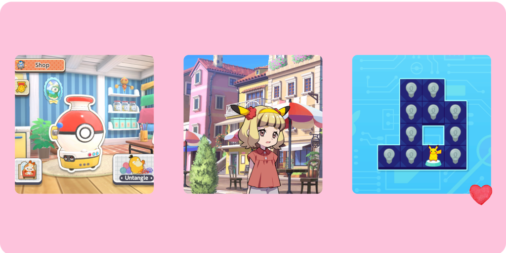 Use each Pokemon’s special ability to run your cafe! Dress up your Pokemon staff and upgrade them to unlock new outfits!