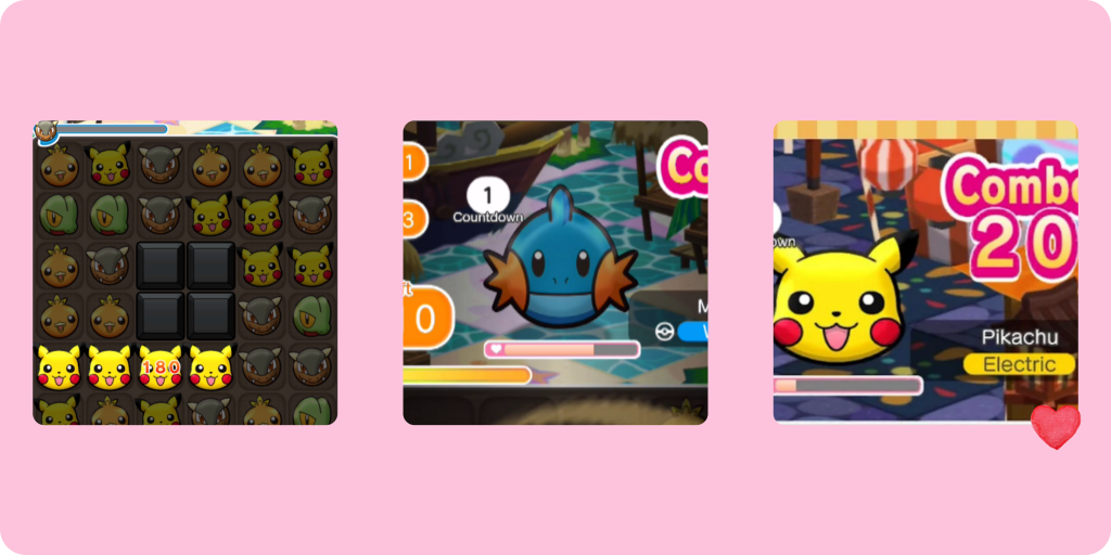 Battle against wild Pokemons by matching Pokemons tokens. Enjoy a very relaxed, intuitive gameplay and many stages.